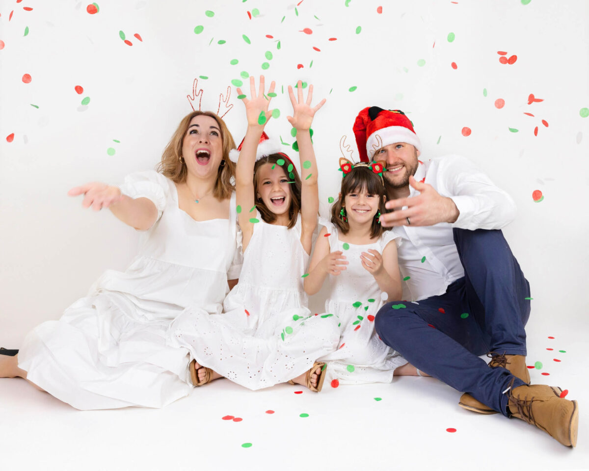 Our White Christmas set is clean, bright, and full of festive cheer — topped off with a confetti toss moment that’s guaranteed to get the kids laughing (and parents smiling too!). Perfect for bold Christmas outfits, matching pyjamas, or anyone who wants a playful, joy-filled take on holiday portraits.